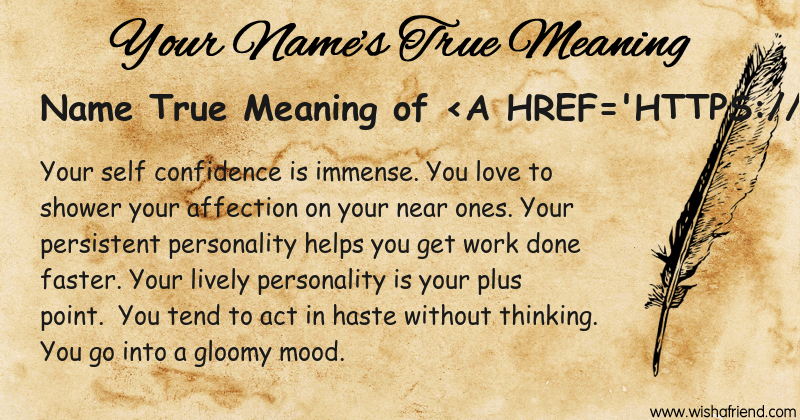 Get to know yourself better with Name True Meaning and share it with everyone on Facebook, Twitter, Pinterest, Tumblr, Whatsapp etc.