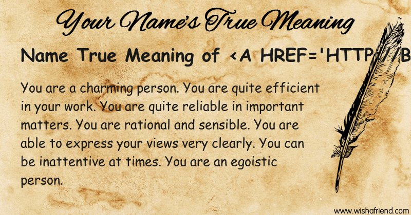 Get to know yourself better with Name True Meaning and share it with everyone on Facebook, Twitter, Pinterest, Tumblr, Whatsapp etc.