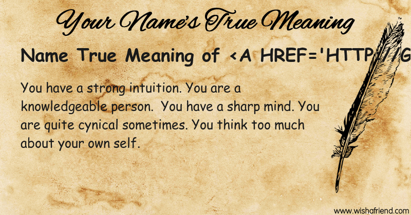 Get to know yourself better with Name True Meaning and share it with everyone on Facebook, Twitter, Pinterest, Tumblr, Whatsapp etc.