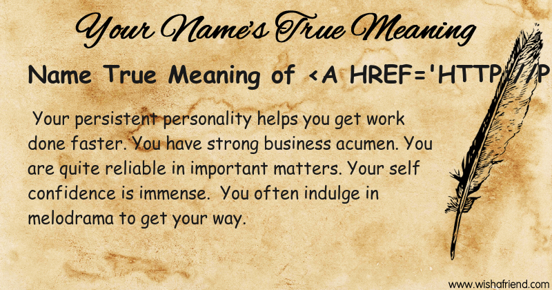 Get to know yourself better with Name True Meaning and share it with everyone on Facebook, Twitter, Pinterest, Tumblr, Whatsapp etc.