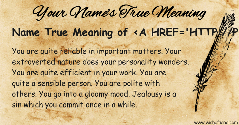 Get to know yourself better with Name True Meaning and share it with everyone on Facebook, Twitter, Pinterest, Tumblr, Whatsapp etc.