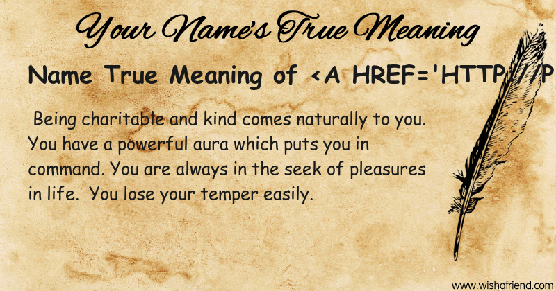 Get to know yourself better with Name True Meaning and share it with everyone on Facebook, Twitter, Pinterest, Tumblr, Whatsapp etc.
