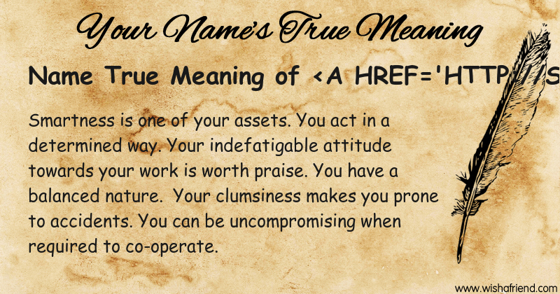 Get to know yourself better with Name True Meaning and share it with everyone on Facebook, Twitter, Pinterest, Tumblr, Whatsapp etc.