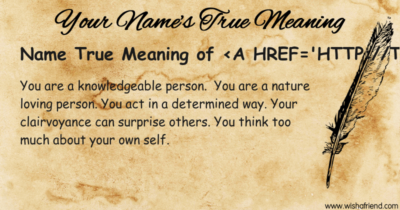 Get to know yourself better with Name True Meaning and share it with everyone on Facebook, Twitter, Pinterest, Tumblr, Whatsapp etc.