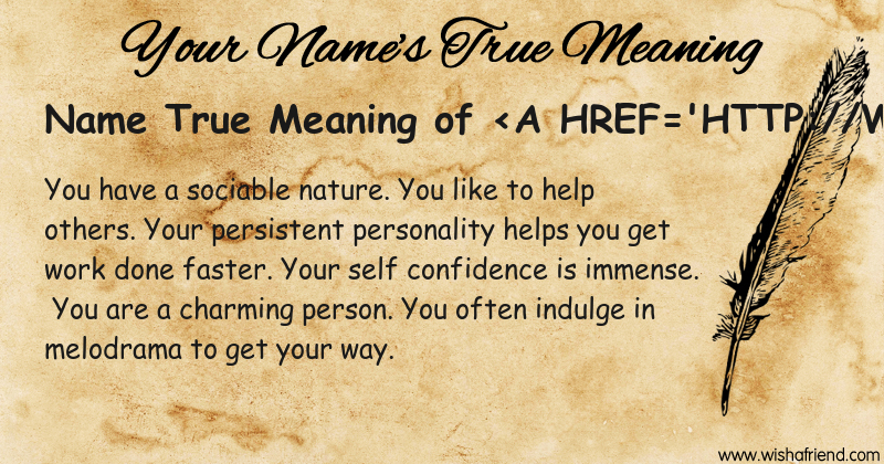 Get to know yourself better with Name True Meaning and share it with everyone on Facebook, Twitter, Pinterest, Tumblr, Whatsapp etc.