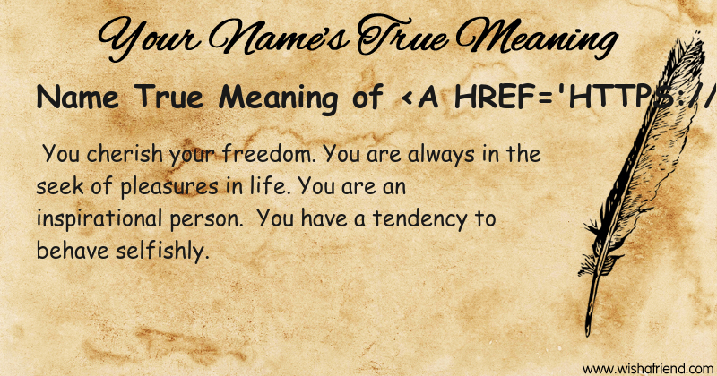 Get to know yourself better with Name True Meaning and share it with everyone on Facebook, Twitter, Pinterest, Tumblr, Whatsapp etc.