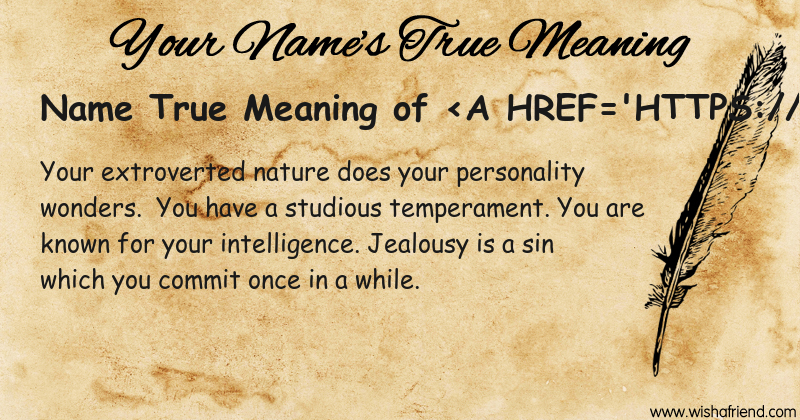 Get to know yourself better with Name True Meaning and share it with everyone on Facebook, Twitter, Pinterest, Tumblr, Whatsapp etc.