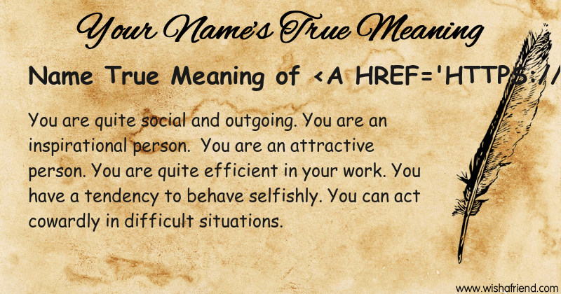 Get to know yourself better with Name True Meaning and share it with everyone on Facebook, Twitter, Pinterest, Tumblr, Whatsapp etc.