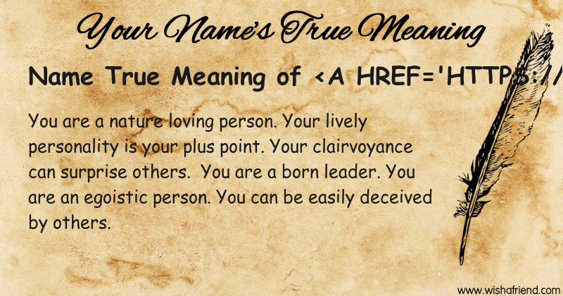 Get to know yourself better with Name True Meaning and share it with everyone on Facebook, Twitter, Pinterest, Tumblr, Whatsapp etc.