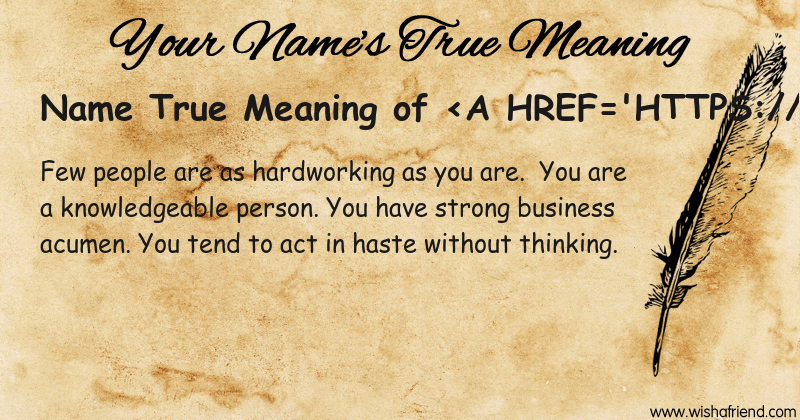 Get to know yourself better with Name True Meaning and share it with everyone on Facebook, Twitter, Pinterest, Tumblr, Whatsapp etc.