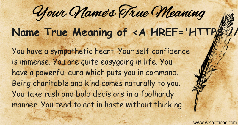 Get to know yourself better with Name True Meaning and share it with everyone on Facebook, Twitter, Pinterest, Tumblr, Whatsapp etc.