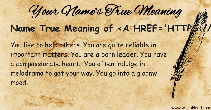 Get to know yourself better with Name True Meaning and share it with everyone on Facebook, Twitter, Pinterest, Tumblr, Whatsapp etc.