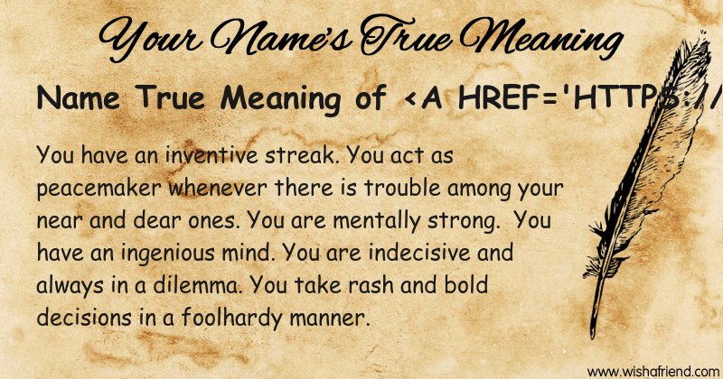 Get to know yourself better with Name True Meaning and share it with everyone on Facebook, Twitter, Pinterest, Tumblr, Whatsapp etc.