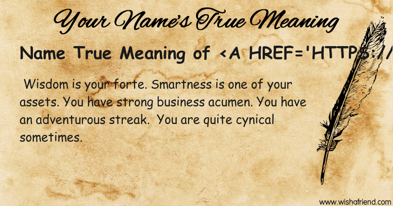 Get to know yourself better with Name True Meaning and share it with everyone on Facebook, Twitter, Pinterest, Tumblr, Whatsapp etc.