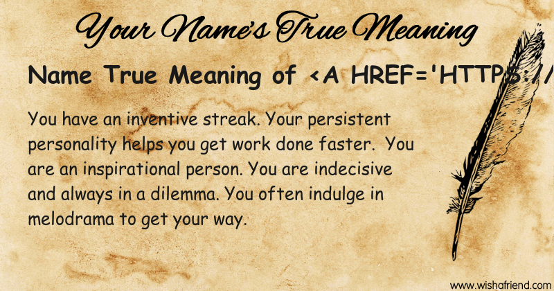 Get to know yourself better with Name True Meaning and share it with everyone on Facebook, Twitter, Pinterest, Tumblr, Whatsapp etc.
