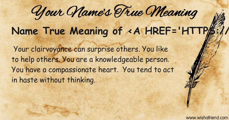 Get to know yourself better with Name True Meaning and share it with everyone on Facebook, Twitter, Pinterest, Tumblr, Whatsapp etc.