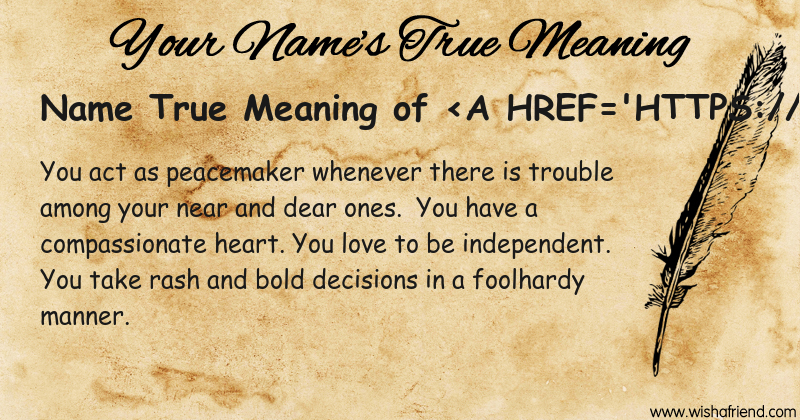 Get to know yourself better with Name True Meaning and share it with everyone on Facebook, Twitter, Pinterest, Tumblr, Whatsapp etc.