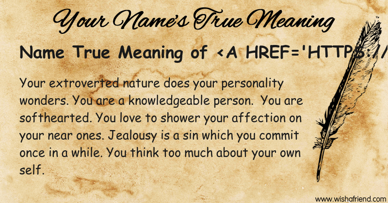 Get to know yourself better with Name True Meaning and share it with everyone on Facebook, Twitter, Pinterest, Tumblr, Whatsapp etc.
