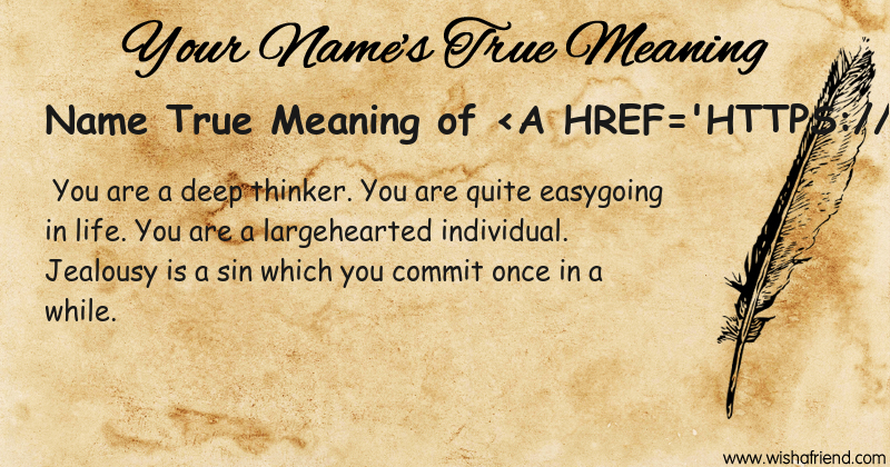 Get to know yourself better with Name True Meaning and share it with everyone on Facebook, Twitter, Pinterest, Tumblr, Whatsapp etc.