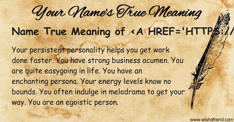 Get to know yourself better with Name True Meaning and share it with everyone on Facebook, Twitter, Pinterest, Tumblr, Whatsapp etc.
