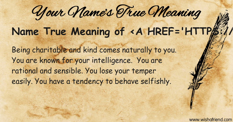 Get to know yourself better with Name True Meaning and share it with everyone on Facebook, Twitter, Pinterest, Tumblr, Whatsapp etc.