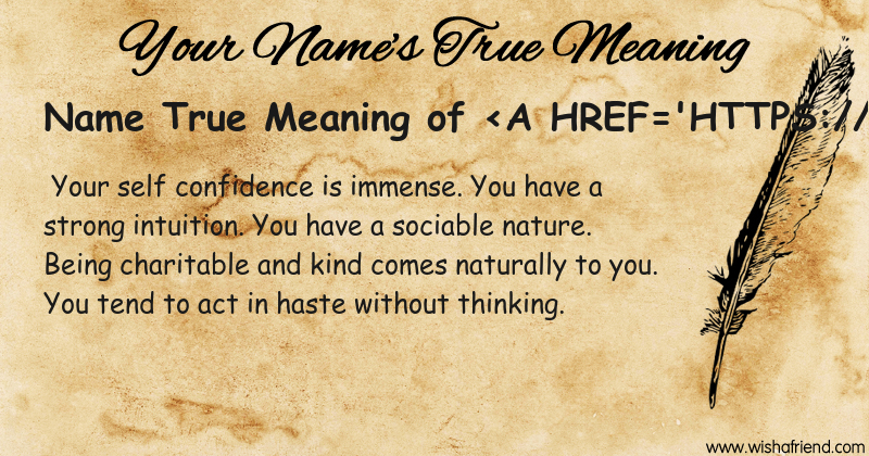 Get to know yourself better with Name True Meaning and share it with everyone on Facebook, Twitter, Pinterest, Tumblr, Whatsapp etc.