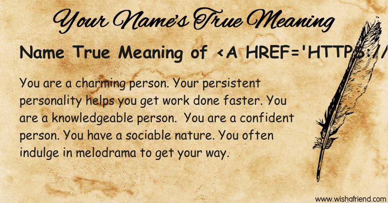 Get to know yourself better with Name True Meaning and share it with everyone on Facebook, Twitter, Pinterest, Tumblr, Whatsapp etc.