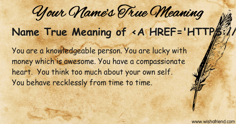 Get to know yourself better with Name True Meaning and share it with everyone on Facebook, Twitter, Pinterest, Tumblr, Whatsapp etc.
