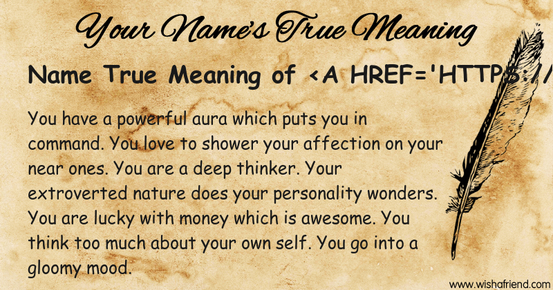 Get to know yourself better with Name True Meaning and share it with everyone on Facebook, Twitter, Pinterest, Tumblr, Whatsapp etc.