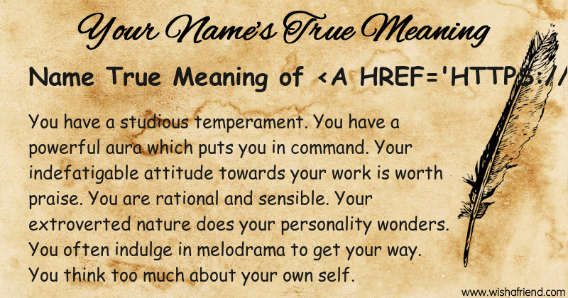 Get to know yourself better with Name True Meaning and share it with everyone on Facebook, Twitter, Pinterest, Tumblr, Whatsapp etc.
