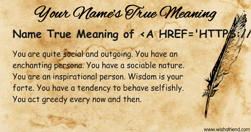 Get to know yourself better with Name True Meaning and share it with everyone on Facebook, Twitter, Pinterest, Tumblr, Whatsapp etc.
