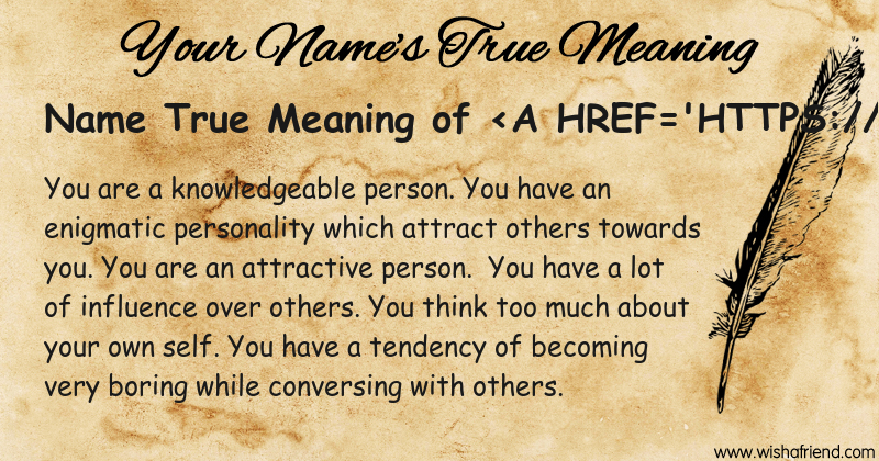 Get to know yourself better with Name True Meaning and share it with everyone on Facebook, Twitter, Pinterest, Tumblr, Whatsapp etc.