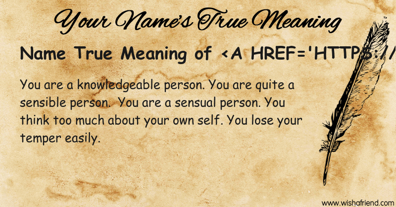 Get to know yourself better with Name True Meaning and share it with everyone on Facebook, Twitter, Pinterest, Tumblr, Whatsapp etc.