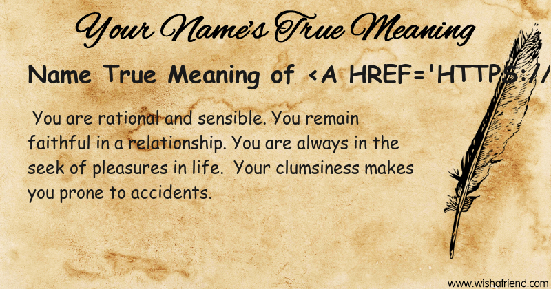 Get to know yourself better with Name True Meaning and share it with everyone on Facebook, Twitter, Pinterest, Tumblr, Whatsapp etc.