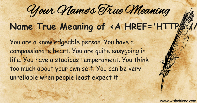 Get to know yourself better with Name True Meaning and share it with everyone on Facebook, Twitter, Pinterest, Tumblr, Whatsapp etc.