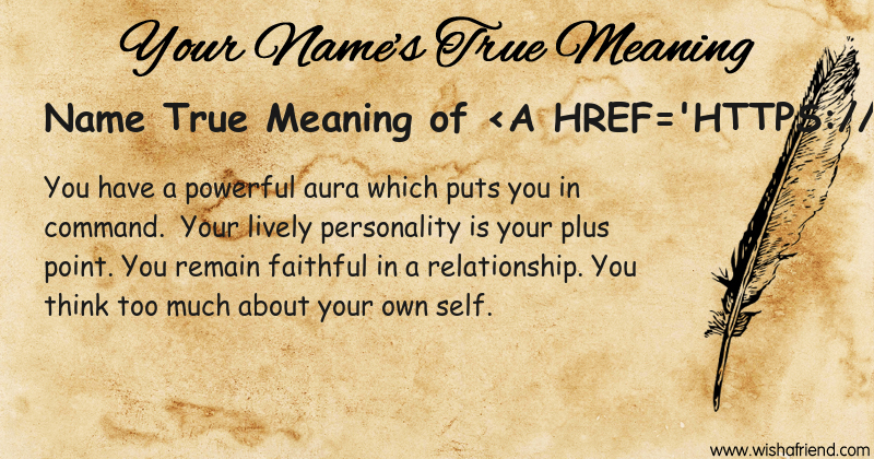 Get to know yourself better with Name True Meaning and share it with everyone on Facebook, Twitter, Pinterest, Tumblr, Whatsapp etc.