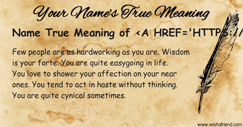 Get to know yourself better with Name True Meaning and share it with everyone on Facebook, Twitter, Pinterest, Tumblr, Whatsapp etc.