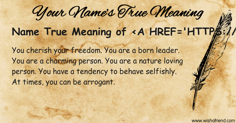 Get to know yourself better with Name True Meaning and share it with everyone on Facebook, Twitter, Pinterest, Tumblr, Whatsapp etc.