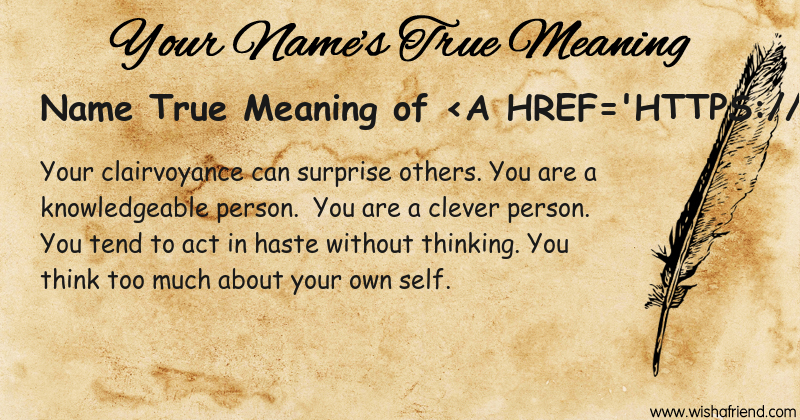 Get to know yourself better with Name True Meaning and share it with everyone on Facebook, Twitter, Pinterest, Tumblr, Whatsapp etc.