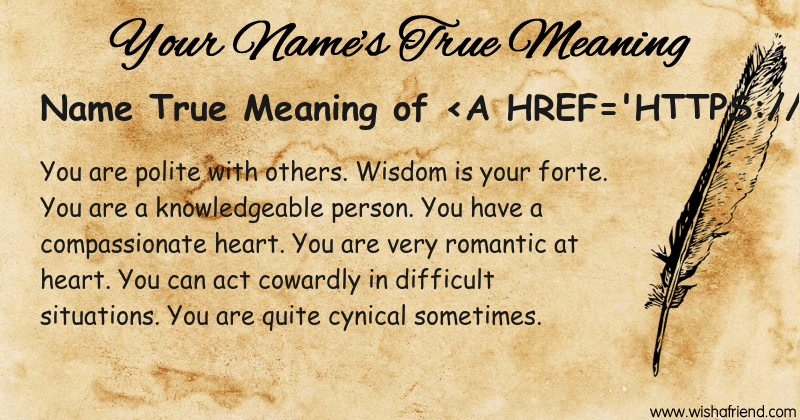 Get to know yourself better with Name True Meaning and share it with everyone on Facebook, Twitter, Pinterest, Tumblr, Whatsapp etc.
