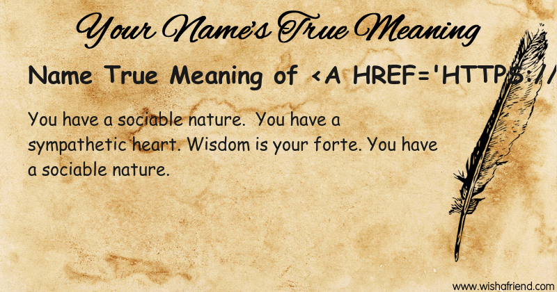 Get to know yourself better with Name True Meaning and share it with everyone on Facebook, Twitter, Pinterest, Tumblr, Whatsapp etc.