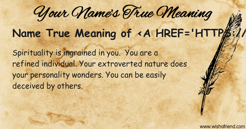 Get to know yourself better with Name True Meaning and share it with everyone on Facebook, Twitter, Pinterest, Tumblr, Whatsapp etc.