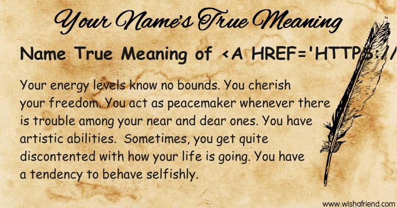 Get to know yourself better with Name True Meaning and share it with everyone on Facebook, Twitter, Pinterest, Tumblr, Whatsapp etc.