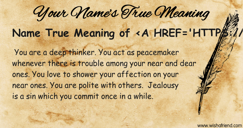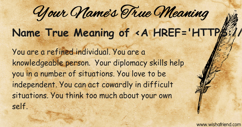 Get to know yourself better with Name True Meaning and share it with everyone on Facebook, Twitter, Pinterest, Tumblr, Whatsapp etc.