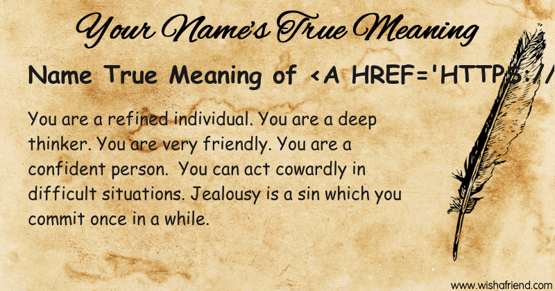 Get to know yourself better with Name True Meaning and share it with everyone on Facebook, Twitter, Pinterest, Tumblr, Whatsapp etc.