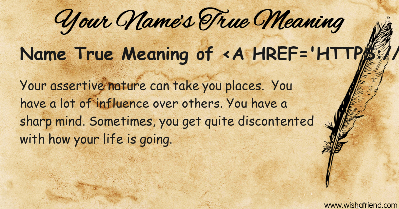 Get to know yourself better with Name True Meaning and share it with everyone on Facebook, Twitter, Pinterest, Tumblr, Whatsapp etc.