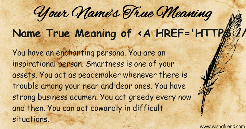 Get to know yourself better with Name True Meaning and share it with everyone on Facebook, Twitter, Pinterest, Tumblr, Whatsapp etc.