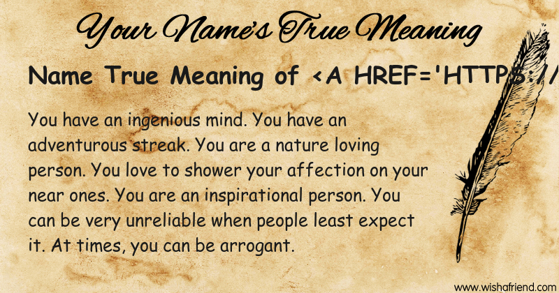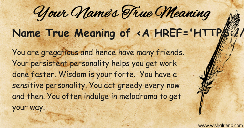 Get to know yourself better with Name True Meaning and share it with everyone on Facebook, Twitter, Pinterest, Tumblr, Whatsapp etc.