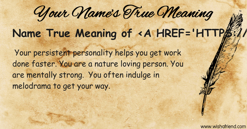 Get to know yourself better with Name True Meaning and share it with everyone on Facebook, Twitter, Pinterest, Tumblr, Whatsapp etc.