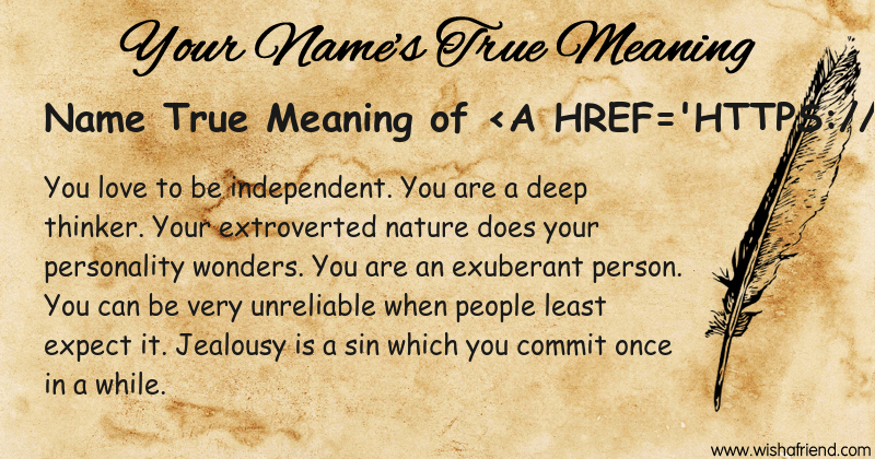 Get to know yourself better with Name True Meaning and share it with everyone on Facebook, Twitter, Pinterest, Tumblr, Whatsapp etc.